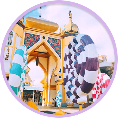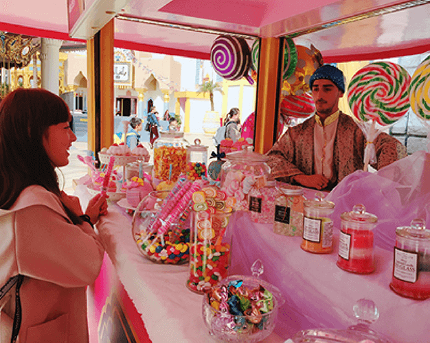 在最有異國氛圍的阿拉伯皇宮建築、人聲鼎沸的異國市集內,除了超夢幻的大型藝術裝置外,還有多樣必吃美食,多樣的異國特色甜點,隨處都有幸福的甜甜氣息。
