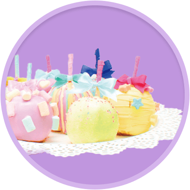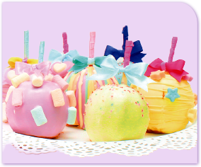 色彩繽紛的焦糖蘋果,蘋果酸甜滋味以焦糖點綴,裹著美麗糖衣,是JC公主最喜歡的水果之一,微酸微甜的口感,如同戀愛般微酸甜美的滋味。